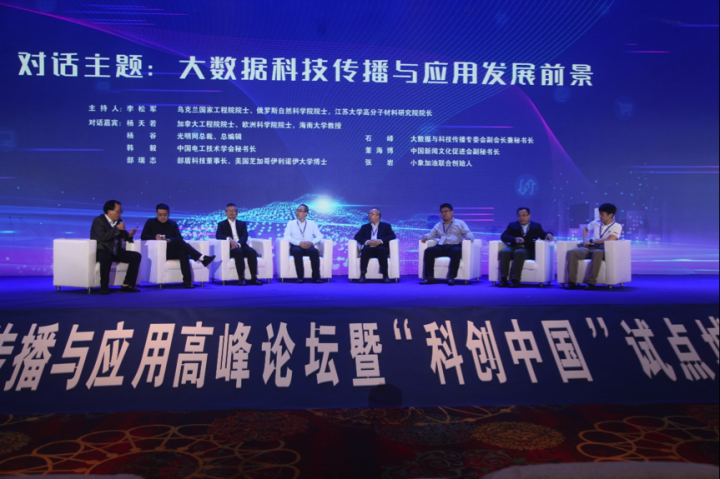 在乌克兰国家工程院院士、俄罗斯自然科学院院士,江苏大学高分子材料研究院院长李松军的主持下,加拿大工程院院士、欧洲科学院院士,海南大学教授杨天若,部盾科技董事长、美国芝加哥伊利诺伊大学博士部瑞志等多位院士、企业家围绕大数据科技传播与应用发展前景展开主题对话。